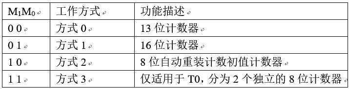 M1M0位:设定定时器/计数器打的工作方式(一共四种)