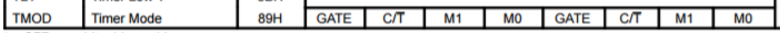 TMOD是一个不能位寻址的寄存器,只能整体操作。TMOD分为两个部分,其中高四位是对应设置T1,低四位对应设置的是T0。