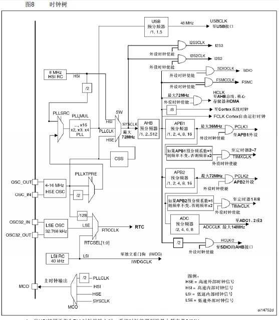 在写系统时钟初始化代码之前可以先看《STM32参考手册》的系统时钟树: