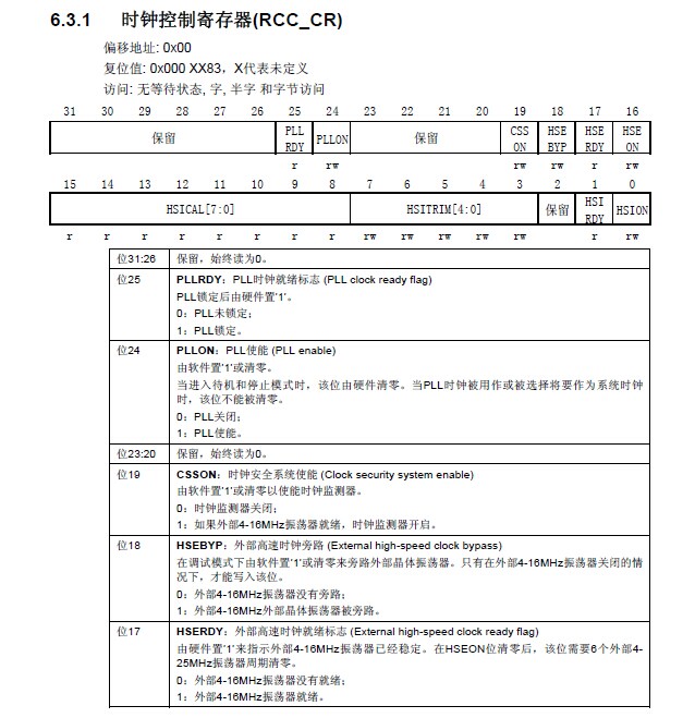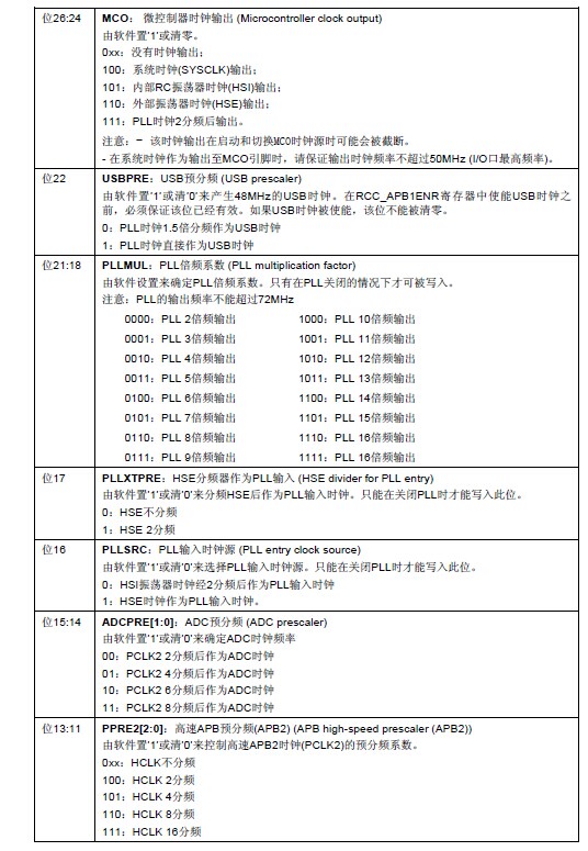 RCC->CFGR &= 0xF8FF0000; //复位SW[1:0],HPRE[3:0],PPRE1[2:0],PPRE2[2:0],ADCPRE[1:0],MCO[2:0]