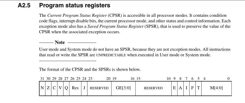 ARM 进入异常模式后,访问的都是各自模式的寄存器,相互模式的访问(不包括用户模式),都是用修改 CPSR 进入另一个模式后,才访问,而相互之间的CPY SET ,都是通过 unbanked regs (R0 - R7)来做的。 那么特权模式怎么访问用户态的寄存器? 其实答案是很简单的,只要修改CPSR 寄存器,设置模式位即可达到进入相应模式的目的。 MSR MRS 两个特殊指令能做到。