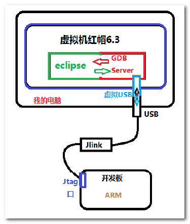 -- 软件 : eclipse, GDB Server, JLink 软件;