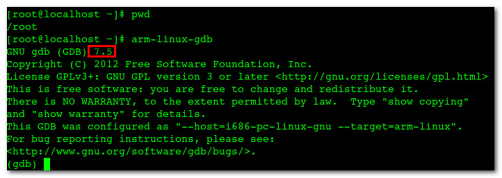 -- 默认的 arm-linu-gdb : 是 7.5 版本的;