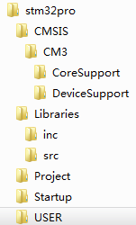 一个完整的工程结构 这是一个完整的工程目录,当然需要注意的几点 1.头文件找不到:解决方法-------------在编译设置------c/c++----includepath里面加入你的头文件的路径 2.c文件加进来之后没有h文件-----------------解决方法:将新的文件编译 3.上面的都做完了,找不到库函数-----------------解决方法:在fwlib加入对应的外设的c文件