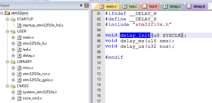 法一:软件延时(不精准) void delay_nms(u16 time) { u16 i=0; while(time--) { i=12000; while(i--); } } 方法二: main.c #include stm32f10x.h __IO uint32_t TimingDelay; /****************** *函数名称: LED_GPIO_Config() *功 能:实现LED等GPIO的配置 *参 数:无 *返 回 值:无 *作 者:Katter ******************/ void LED_GPIO_Config(void) {
