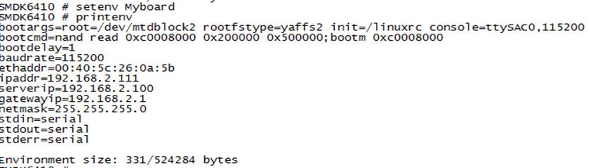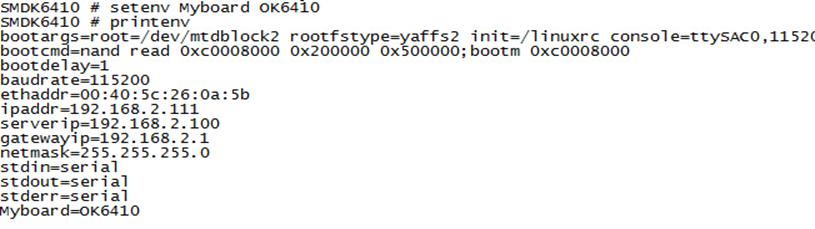 现在我们执行setenv Myboard OK6410去增加一个环境变量: