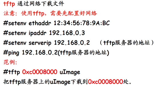 最近要学习ARM开发板,想按着单片机的套路,首先开发裸机程序。百度了下,大部分的裸机程序都是用RVDS或者ADS开发,用JLink 或者JTag烧写到Sdram中去执行。由于在ubuntu下使用习惯了,想脱离集成开发环境,所以在Linux下使用arm-linux-gcc 等工具开发。首先遇到的问题就是开发好的二进制文件怎么烧到板子上运行呢? 百度上给出的大部分方法是通过Uboot 来烧写,用Uboot的DNW烧写进去,但是我用的环境是Win7 64bit,DNW的USB驱动死活装不上,而且,也懒得找别人借条OTG线,所以这个途径就不考虑了。继续google,找到了一种方法,通过Uboot的Tftp 功能把二进制文件烧写到开发板
