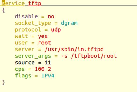 Tftp的配置文件:/etc/xinetd.d/tftp: