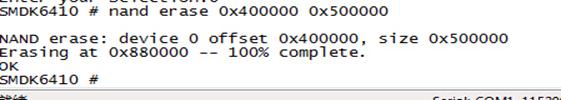 烧写完成,设置开发板从nand flash启动,重启开发板: