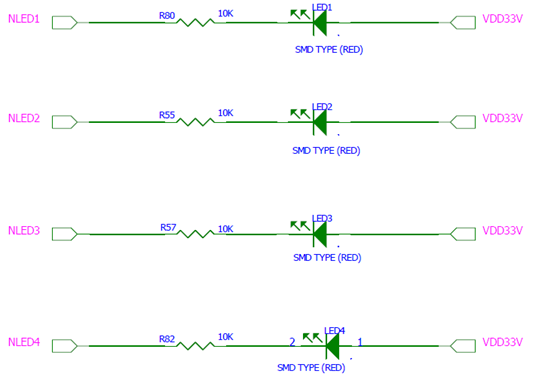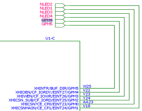 知道原理后,看看OK6410的核心板原理图,查看NLED1-4应该接到核心板的哪些引脚:led的部分截图: