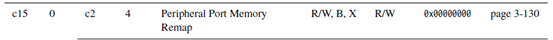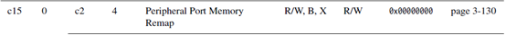 进入这一章:找到c15这一组寄存器里的Peripheral Port Memory Remap这个寄存器,就是外设基地址寄存器。前面的灯不亮,就是少了通过这寄存器的设置,对外设进行初始化。