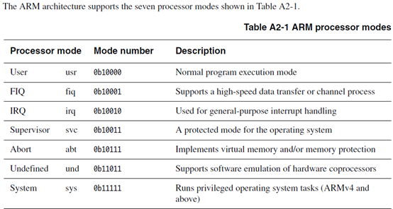 解答arm处理器的七种工作模式