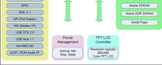 芯片(比如2440、6410、210等等)包含ARM核。 指令结构和ARM核有关系: ARM9对应指令架构版本ARMV4 ARM11对应指令架构版本ARMV6 cortex A8对应指令架构版本ARMV7 6410芯片的概况: 2440芯片的概况: 210芯片的概况: