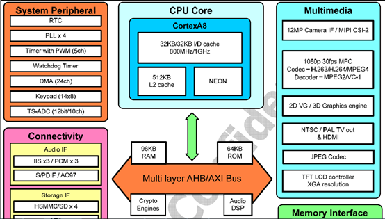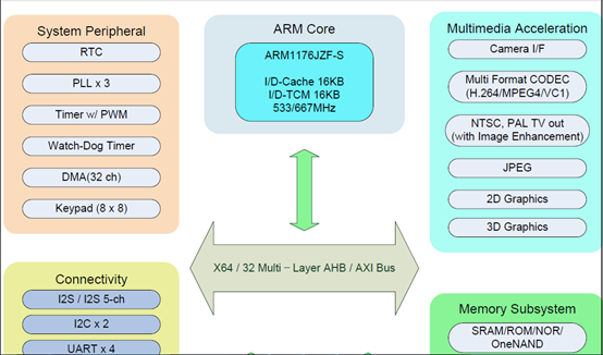 可以看到6410芯片里包含了ARM1176JZF-S核