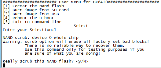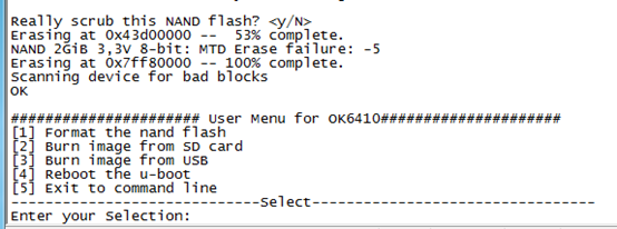 格式化NandFlash不是必须的,只是为了更好确定因素。上面是格式化的过程。格式好了之后重新设置开发板从NandFlash启动。