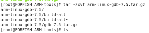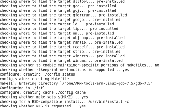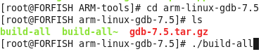 tar -zxvf arm-linux-gdb-7.5.tar.gz,然后进入该文件夹,执行build-all:./build-all进行安装:图1-4: