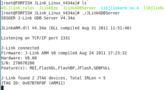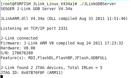 然后运行一下JLinkGDBServer,看看能够检测到内核:图2-4: