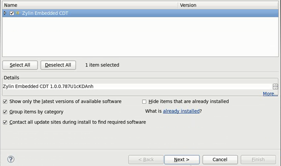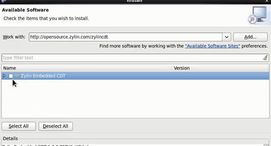 然后在Work with框里输入插件的位置:http://opensource.zylin.com/zylincdt。输入完成之后回车,会看到要下载的插件:图2-9: