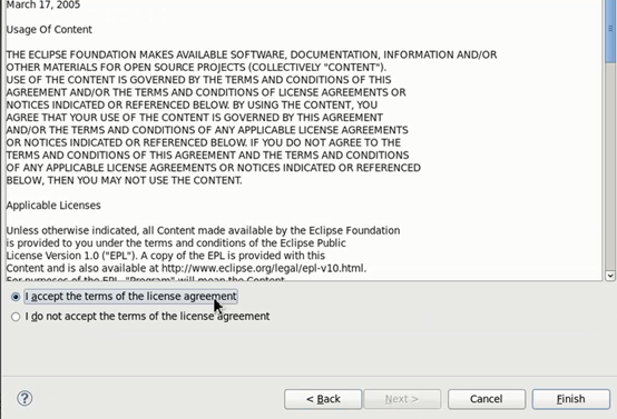 接着选中我接受协议,然后点击Finish,就进行安装了:图2-12: