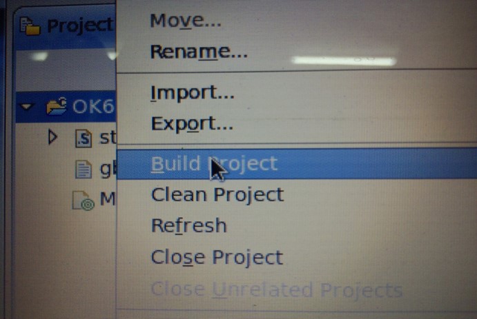编译也很简单,用鼠标,选择该工程名字,右键,然后选择Build project,进行编译:图3-5:
