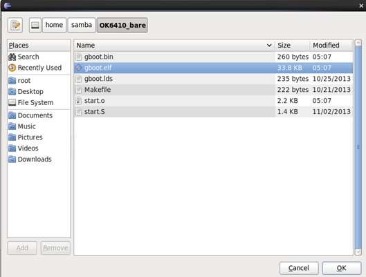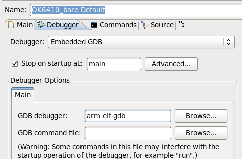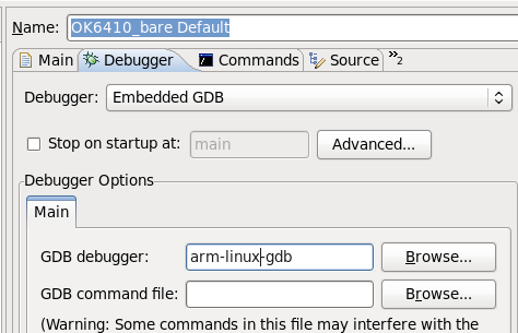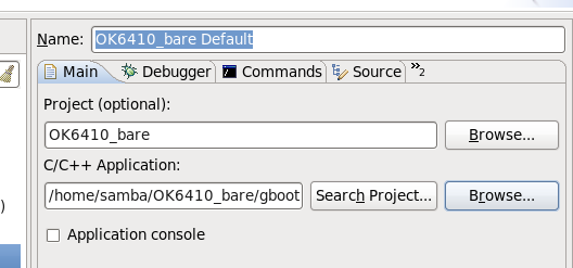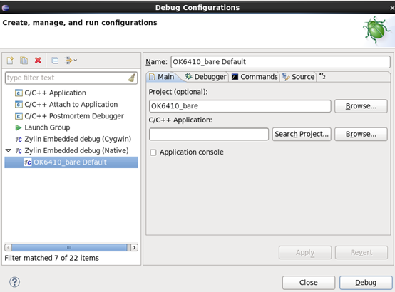 然后双击Zylin Embedded debug (Native),会生成一个默认的调试配置,名字是OK6410_bare Default,会出现下面的窗口。图3-8: