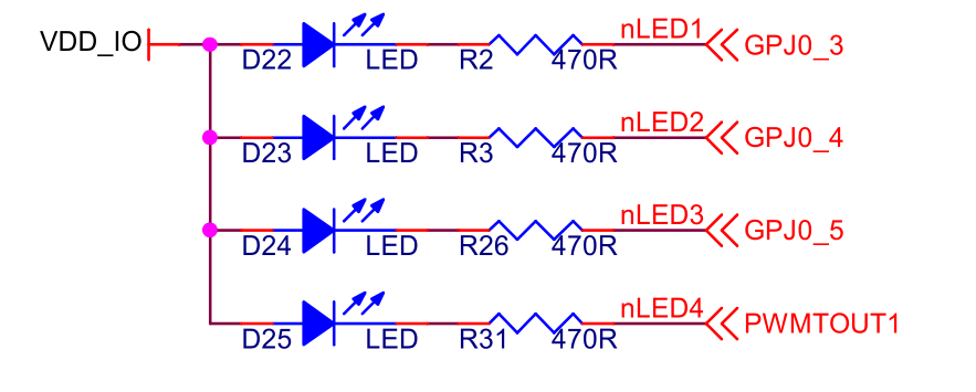 PORT B~PORT H/J在寄存器操作方面完全相同,GPxCON 中每两位控制一根引脚,00 输入