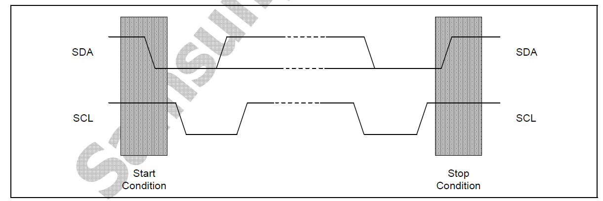 (三星数据手册A Stop condition is a Low-to-High transition of the SDA line while SCL is High. The master generates Start and Stop conditions.