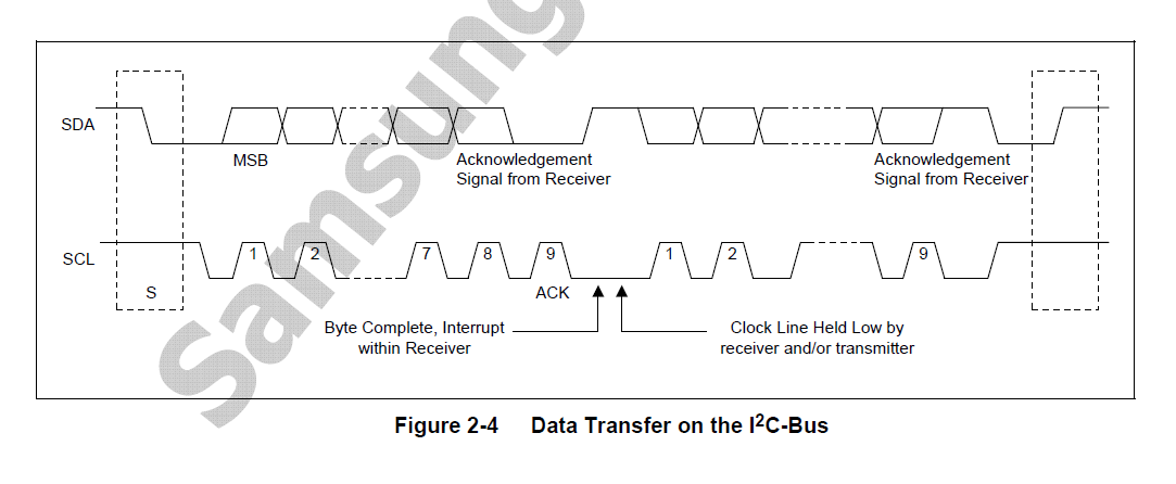 (三星数据手册:If the I2C-bus interface is inactive, it is usually in Slave mode. In other words, the interface should be in Slave mode before detecting a