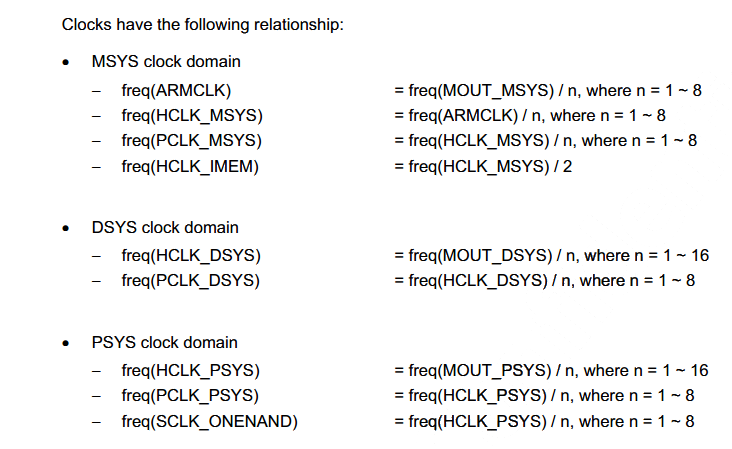 2) DSYS:用来给显示相关的部件提供时钟,包括 FIMC、FIMD、JPEG 和 multimedia IPs;