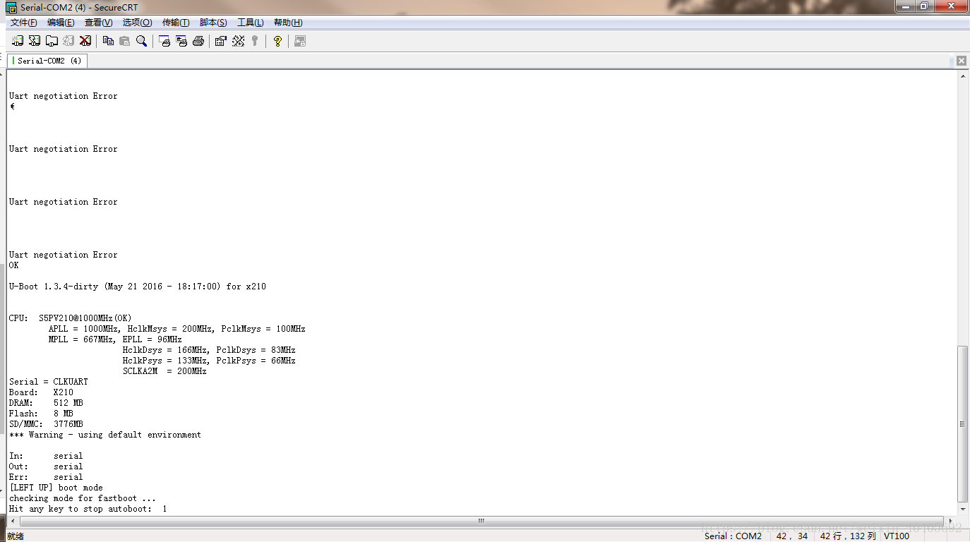 S5PV210刷机时“Uart negotiation Error”无法刷机解决办法