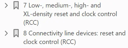 RCC,Reset and Clock Control,重置以及时钟控制;STM32手册使用了两个章节来对其进行描述,可见它的重要性;对于RCC的初始化也是比较复杂,里面包含了STM32对于时钟的相关机制,