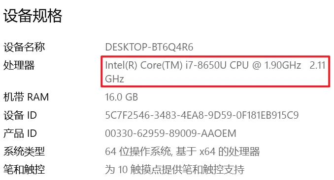 在win10系统中可以看到有两个频率,如下图,分别是1.9GHz以及2.11GHz;其中第一个是Intel提供的标准频率,其实是CPU名字的一部分,第二个频率是win10系统自己计算出来的,很多时候和Intel提供的频率值并不相等;不过两者相差也不会太大。