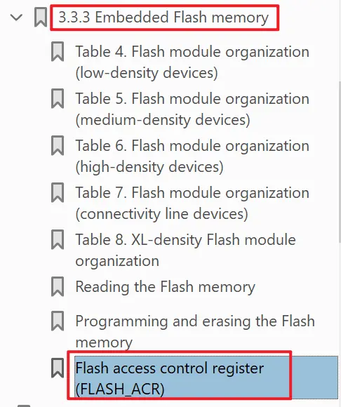 不过这次要找FLash的ACR似乎并不那么顺利,很难直接从目录中查找到,需要全局搜一下ACR,不过还好,没有让我们搜索太多时间,在3.3.3章节中找到了: