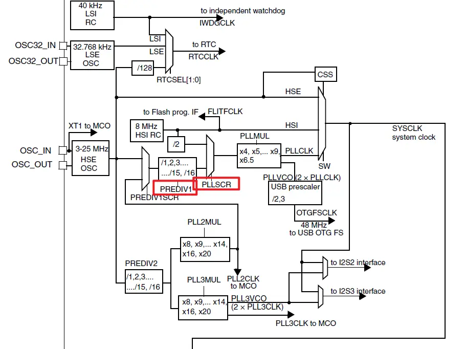 所以PLL的时钟源还是HSE,HSI,不过经过PLL倍频调节输出的时钟称之为PLLCLK;