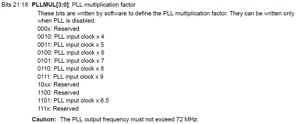 PLL -= 2;*((uint32_t *)RCC_CFGR) |= PLL<<18;