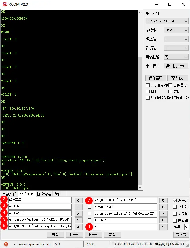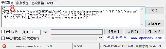 板子串口返回+QMTOPEN: 0,0表示连接成功。