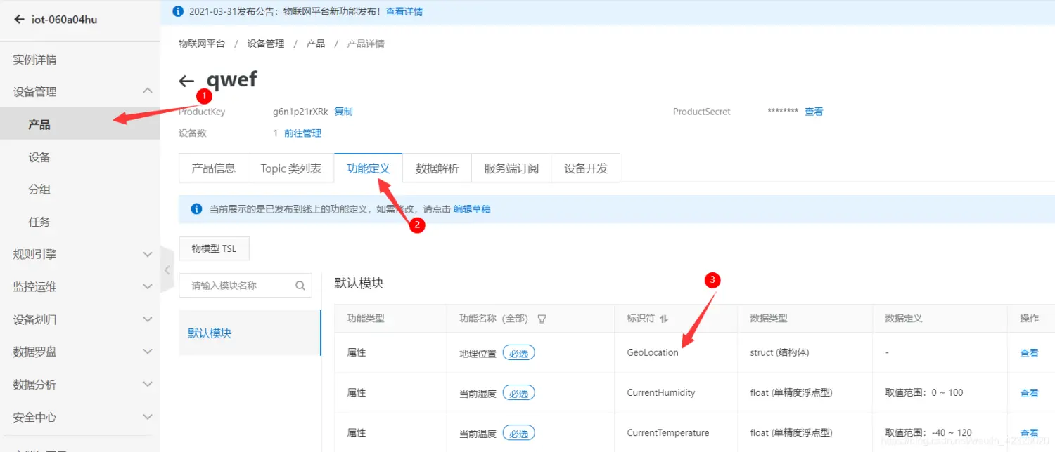数据5要结合你的阿里云物联平台中的7的三个码ProductKey、DeviceName和DeviceSecret。