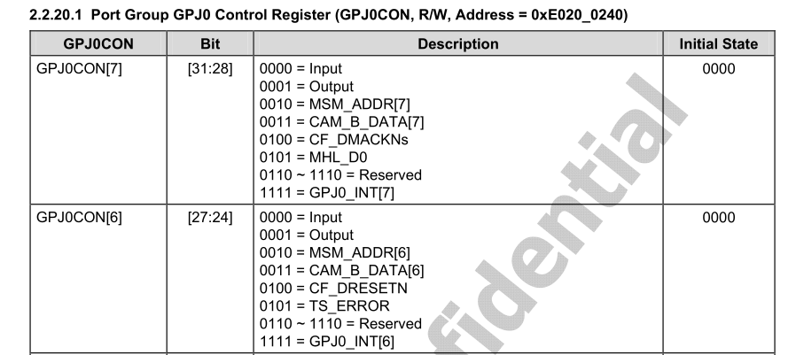 #define GPJ0CON 0xE0200240