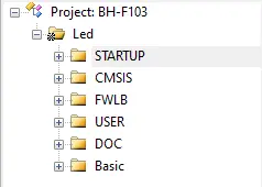 其中STARTUP是STM32的启动代码,用汇编语言编写。