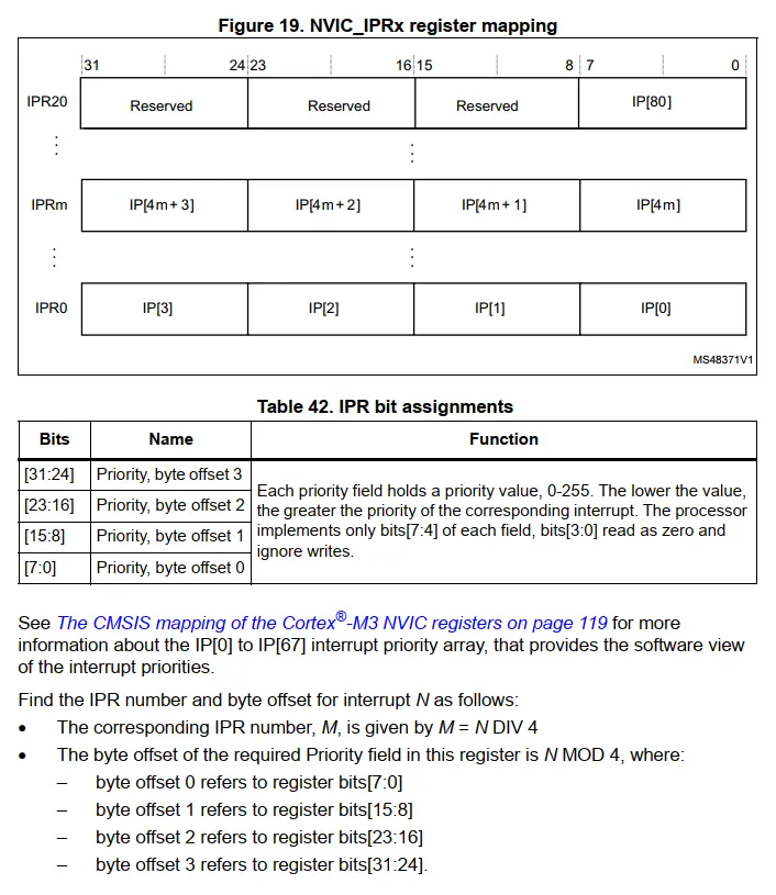 ST在上述分组中,ST还将中断分成了主优先级(抢占优先级)和子优先级(响应优先级)。对应的寄存器