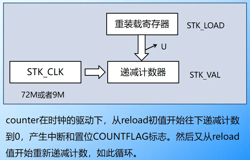 一个计数循环的事件t = 重装载值RELOAD *(1 / 时钟Systick_CLK)