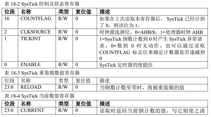 SysTick:系统定时器,24位,只能递减,存在于内核,嵌套在NVIC中,所有的Cortex-M内核的单片机都具有这个定时器。