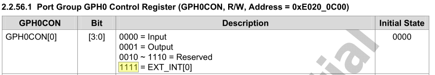 *x = 0,GPH0_0为输入模式