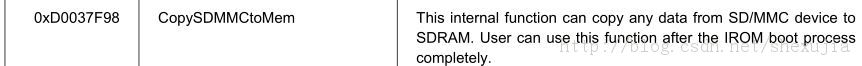 因为我使用的是从SDMMC启动,所以我们会使用到CopySDMMCtoMem这个函数,这个函数被定义在0xD0037F98这个位置.