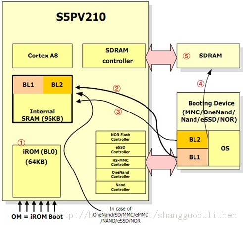 (1)BL0:是指S5PV210的iROM中固化的启动代码