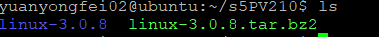 1.我们要移植配置Linux-3.0.8系统,这里我是直接在用户目录下使用Samba直接建立个共享文件夹的,在Windows中直接把想要需要的文件放在其中,然后在linux中操作文件。正如下图所示,将.bz2文件放在s5PV210文件下,并解压为一个linux-3.0.8的一个文件。解压:tar -xvf linux-3.0.8.tar.bz2,等待解压完成。