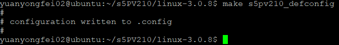 3.为了实现我们能够挂载s5PV210芯片,我们需要对系统进行配置。执行语句 make s5pv210_defconfig 系统会默认给我们配置一些相应的设置。如下图所示即可。