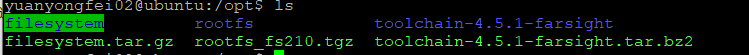 8.从上我们也可知道,我也把需要挂载的文件也放在了/opt目录下,此时我们也对该文件进行解压 sudo tar -xvf rootfs_fs210.tgz ,解压得到rootfs文件。加压之后我们就对NFS进行配置。