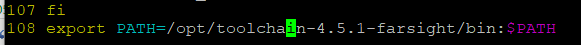 经过解压之后,得到toolchain-4.5.1-farsight文件,在当前目录下执行sudo vi ~/.bashrc语句,对文件进行添加配置信息export PATH=/opt/toolchain-4.5.1-farsight/bin:$PATH ,添加完成后,保存退出即可。