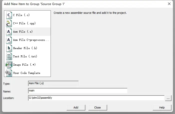 新增汇编文件